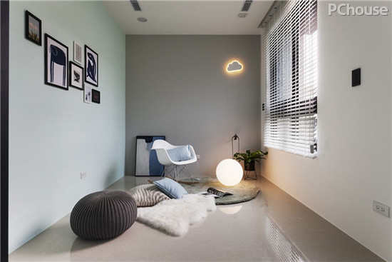 编辑点评:可作为起居室与琴房使用的多功能房,设计淡蓝色壁面、白色木百叶窗,搭配云朵造型的童趣壁灯,是女主人最爱的空间。