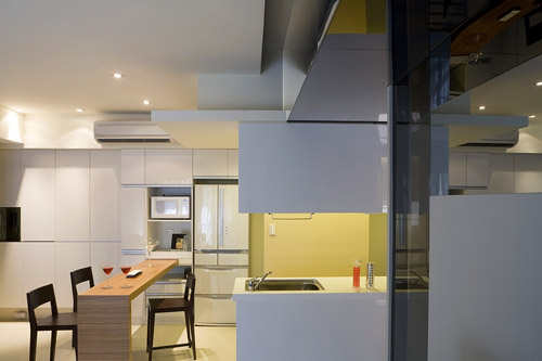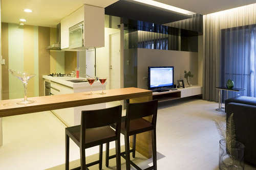 以符合业主的生活型态规划,藉由开放式的吧台的设立取代传统餐厅的地域概念,同时藉定了客厅与厨房之间的开放关系,围塑空间的大器表情。
