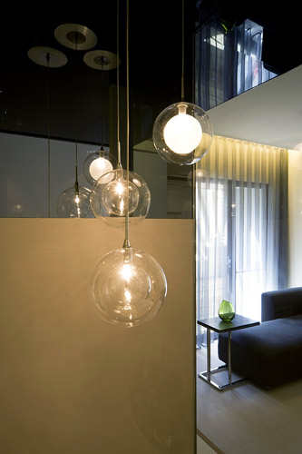 利用穿透的手法,灯饰成为视觉焦点的表现,反射材质的交互运用,将空间感展现出来。