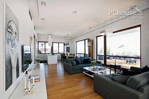 【太平洋家居网 设计频道】在波兰华沙,任何人看到这座复式都会感到惊叹。无可挑剔的白色勾勒出一道道柔和的线条,创造出清爽的气氛。明亮的灯光使得屋内每一处都可以熠熠生辉,而宽敞的露台以及迷人的华沙城风景也是令人叫绝。