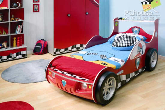 狂热的赛车小男孩们最崇拜的便是这样火红的激情了,将赛车元素融入到卧室设计中,将卧室打造成孩子最完美的独立娱乐空间。