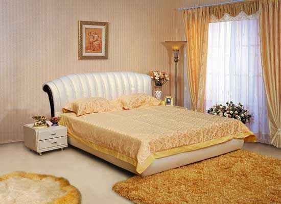 白色的床上披上黄色的床单,黄色的地毯以及黄色的窗帘,都将这个空间装扮得很高贵。