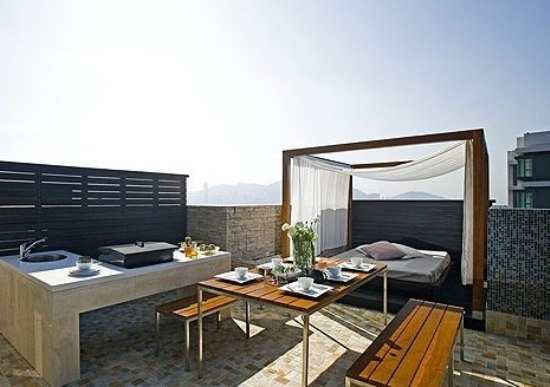 露台的布置极为简单,在没有过多装饰的前提下,如何摆脱平凡?
