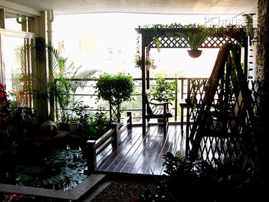 人户花园的设计是,让人直接感受到从高楼林立都市环境中跳跃到令人轻松后花园的生活环境。