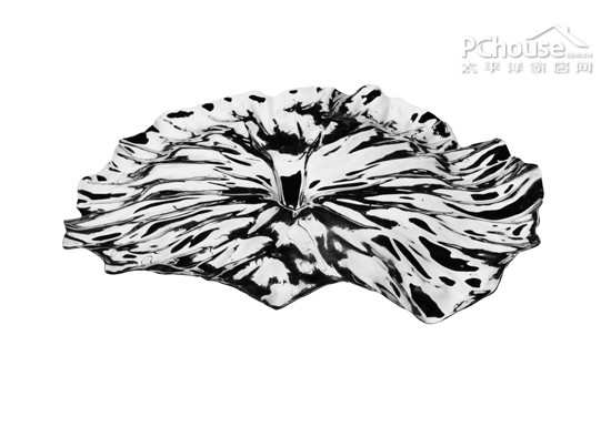 这片枯了的荷叶——具有更加起伏和优美的形态和更加凸显和清晰的脉络,我们用计算机技术将这种时间塑造出的特质固定保存了下来。自然的设计是无法模拟的,我们的设计原则是用尽量少的人为改动将它转化成一个托盘。因此,尽管物件的材质已用不锈钢来重新诠释,人们使用与观赏的本质上仍然是那一片荷。