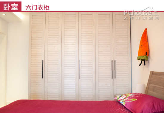 卧室:由于设计师一开始就做了软装方面的指导,所以家具的尺寸都是正正好好的,比如卧室里的六门衣柜,储藏空间非常大,也不显拥挤。