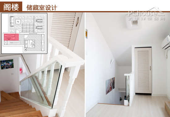 阁楼:斜顶的阁楼空间内还规划了不少储藏空间,即便是以后添了人口也足够使用了。
