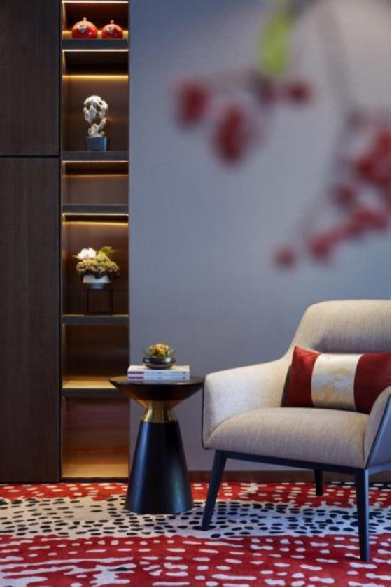 VIP休息室的地毯、摆件则延续茶室氛围,细微之间,风雅娴静的气度神韵也升腾而出。