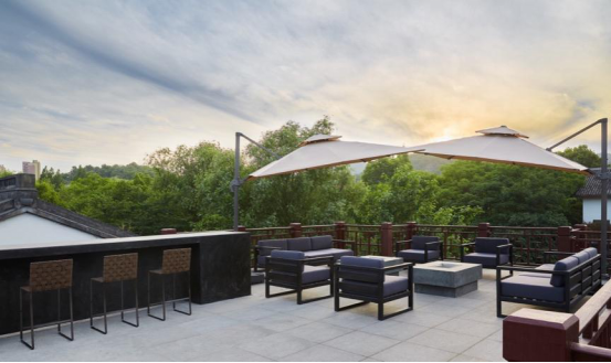 露台是包厢功能场景向室外的延伸,为宾客提供了聚会绝佳场所。听风望水、闲看流云,让人悠然自在,回归诗意心境。