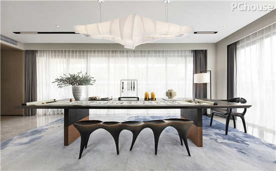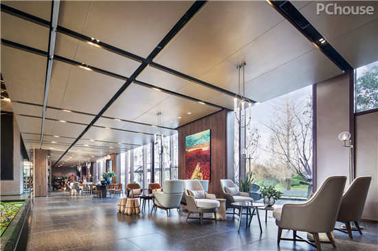 【太平洋家居网 设计频道】青岛,以占据滨海之城的地理区位,揽纳海天胜景,拥享人文积淀,呈现山环水抱的生态格局,自然与人文的诗意万象流转于此。绿地·国科健康科技小镇售楼处落址青岛北部门户,辐射青岛半小时生活圈,自然山体、水体廊道与基地内部形成良好的互动关系,其软装设计由香榭蒂设计执笔担纲。