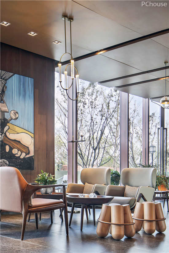 一人悦品咖啡、沉浸阅读的小天地,抑或是两人、四人甚至是多人对谈的小空间,是设计师综合考量空间当下的商业属性与未来的社群聚合属性,以更极致的空间情境细分,包容诗意万象、人情趣致。咖啡文化的小细节丰富了空间的人文调性,墙面挂画分别写意种植、采摘、烘焙、冲泡等工序,由各咖啡豆产地明信片拼就“QINGDAO”字母的一整面木艺背景墙直白而简约,氤氲的咖啡香气与青岛的城市风貌结合得愈发紧密。