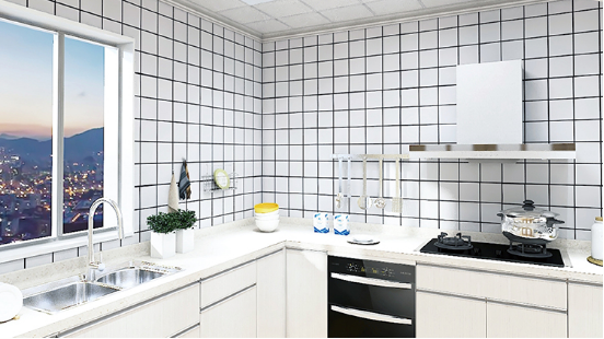 这款白色格子防油墙纸可以说是非常经典了,可以搭配北欧风、现代简约风等风格的厨房。而且防油墙纸易贴易撕易清洁,能够遮挡厨房的油烟痕迹,风格选择多样,更换成本低,用腻了再换换换也完全不用心疼。