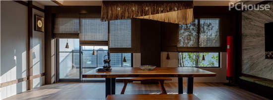 设计师精选竹片卷帘叩合量体主题,并特制注连绳流苏,于机能功用中打造美观视野。、