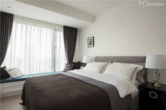 编辑点评:主卧空间临窗处规划了卧榻,兼具收纳机能与休憩放松的场域。