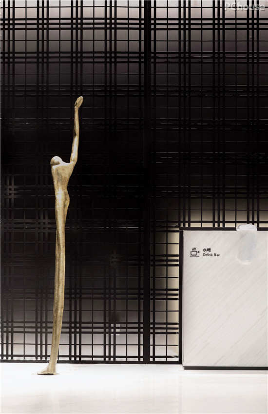 设计中,有序的极简、层变的符号、立体的元素,在空间中营造诗趣盎然的光影之境、可观可感的虚实之像。在光影的摇曳间,无处不在的抽象人型雕塑愈发显得生动,动态与静态场景交错其中,富有意趣。