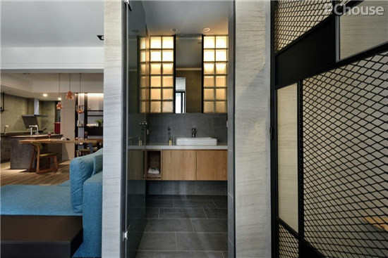 编辑点评:为让空间内的采光更加通透,主卧卫浴与客用厕所间使用玻璃砖材质,让双向光线都能彼此串联。