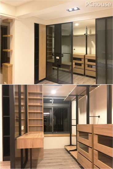 编辑点评:独立更衣室以“穿透拉门”呈现轻盈明亮感,内部则依循屋主的生活机能,透过铁件及木作打造化妆桌、衣柜及展示层板,让收纳可以有系统的分门别类。