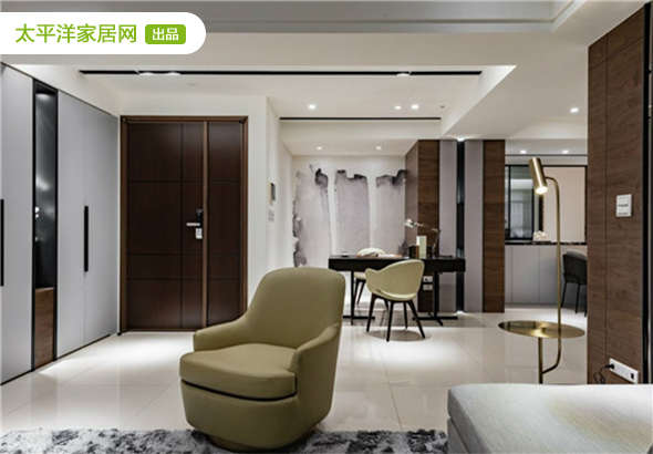 编辑点评:比沙列设计总监张静峰,在电视墙面及天花板都运用线条切割的手法,让空间多了立体的层次感。