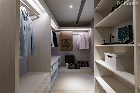编辑点评:浅色系木质色调与对称式排列,让更衣室有一种整齐且温暖的美感。