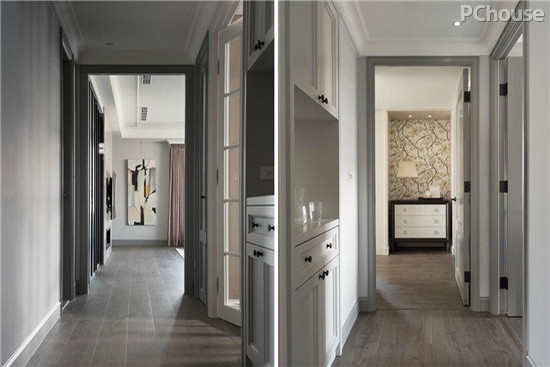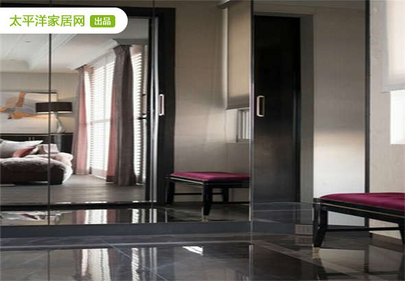 编辑点评:进门玄关以灰色调谱出沉稳调性,搭配玻璃镜面鞋柜,更显俐落简约。