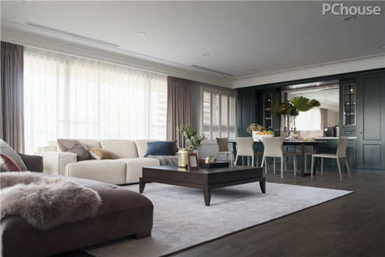 【太平洋家居网 设计频道】崇尚舒适好生活的四、五十岁屋主夫妻,冀望“家”的轮廓,是一处抛却繁琐、岁月静好的空间,瀚观室内装修设计的张馨设计总监在了解屋主向往后,以久居耐看、舒适生活为设计主线,运用“刚刚好”的空间设计与机能配置,辅以家具、窗帘、织品等空间软件铺叙,让居住者成为空间最重要的主角,并透过线条勾勒、采光安排与空间感营造,构划出敞亮舒适的生活情境。(幸福空间供稿)