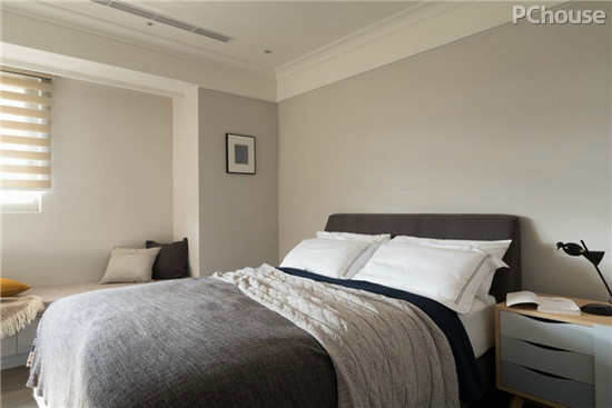 编辑点评:男孩房透过淡暖灰绘出北欧风情,中性色调搭配手感的寝卧软装,营造简约舒适生活感。