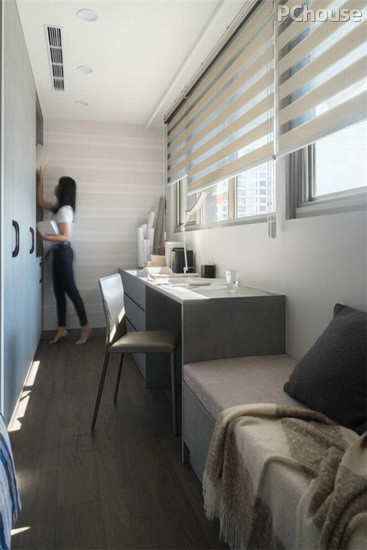 编辑点评:选用与窗框横线高度等齐的双色窗帘,运用色块层次变化,创造趣味的视觉感受。
