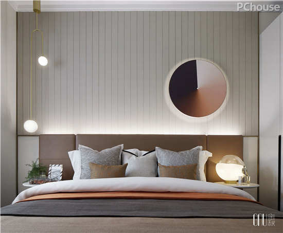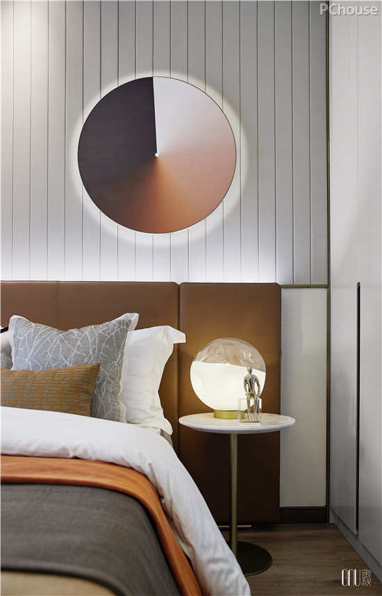 卧室在陈设上,展示了圆的各种形态——或错落有致,或剔透光滑,或大小不一、深浅渐变,或是不规则的立体凹凸。既做到单一空间内的呼应,也是不同卧室整体风格的对应。