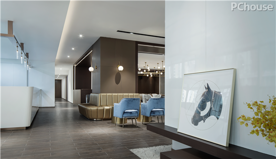 洽谈区,采用经典的分布式对称布局,大片落地窗使采光做到极致,更将都市的风貌引入眼帘。