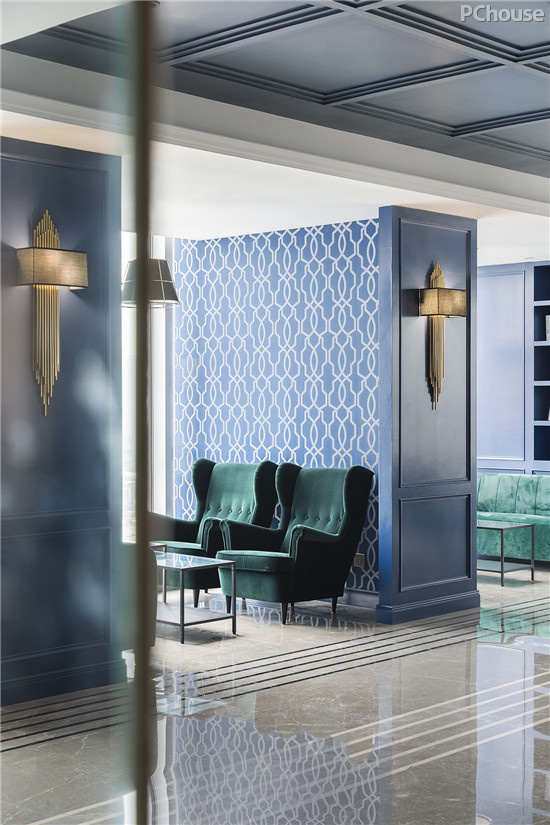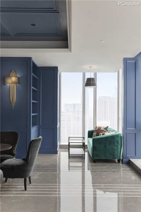 毫不杂糅的色彩与简单的形态反映了深刻的意义。蓝色的智慧与深邃,却又带着跳脱的趣味,美丽得像是沉浸在无尽温柔的天空里。高雅的西式空间,打破了传统,重构古典与现代文化的关系,把艺术精髓贯穿在空间里,让这抹蓝意更深入人心。