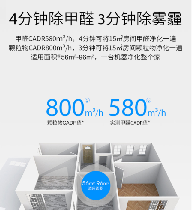 首先要看净化能力——甲醛 CADR 值。数值越高,净化速度越快。
