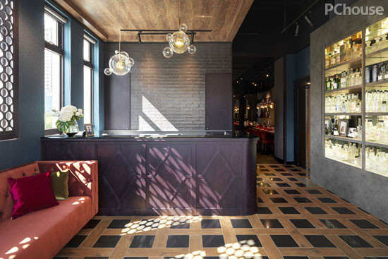 【太平洋家居网 设计频道】铁板烧,由日本传统锄烧基础演变而成,把料理厨台搬到外面的概念,让厨师和顾客进行交流,在用餐的同时能够欣赏厨师厨艺的一种餐饮形式,结合西式用餐环境与日本料理型态。此种饮食文化传到台湾经过30年的发展和改良,衍生出一种具有法式、中式和日式相结合的新的饮食方式,而此案于此基础上,创造融入法式优雅语汇与美式休闲感并具的用餐环境。