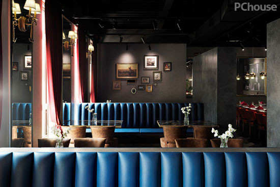 利用古典灯饰及画框使卡座区有着欧式古典表情,让每一座位区都有不同空间感受。