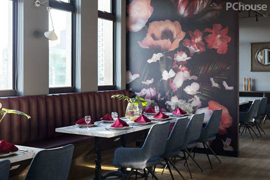 一般来说,商业空间的视觉停留时间较短暂,所以风格可以更随心所欲、天马行空,利用对比色彩、渲染力强的设计,使每位走进餐厅里的顾客,都像是经历了一场视觉奇幻探险,也藉由内部软件细节的搭配,传达出品牌的气质与定位,达到视觉、味觉的美食双飨宴。
