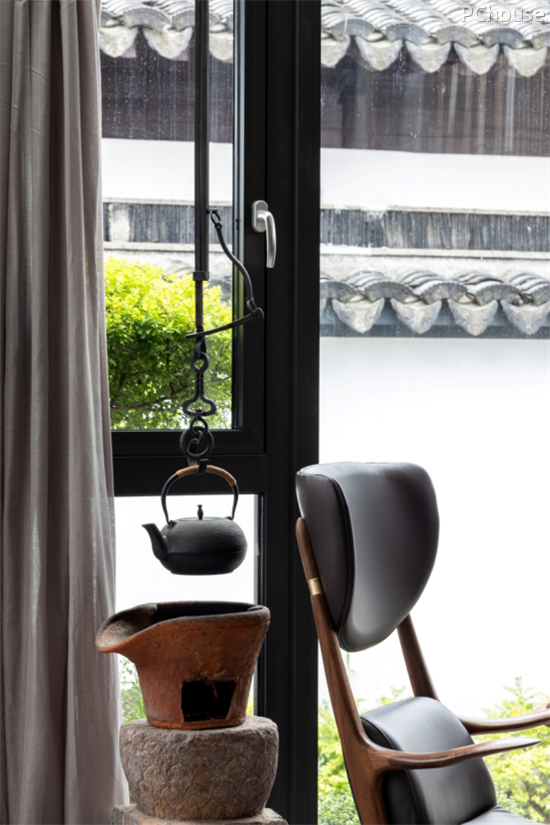 大面积的落地窗设计,打通室内外的光线和视野,窗外的景色就是浑然天成的壁纸,与日夜交替,随四季变迁,阳光细细洒落,喝上一杯古法煎茶,望着窗外,一切都足够惬意......。