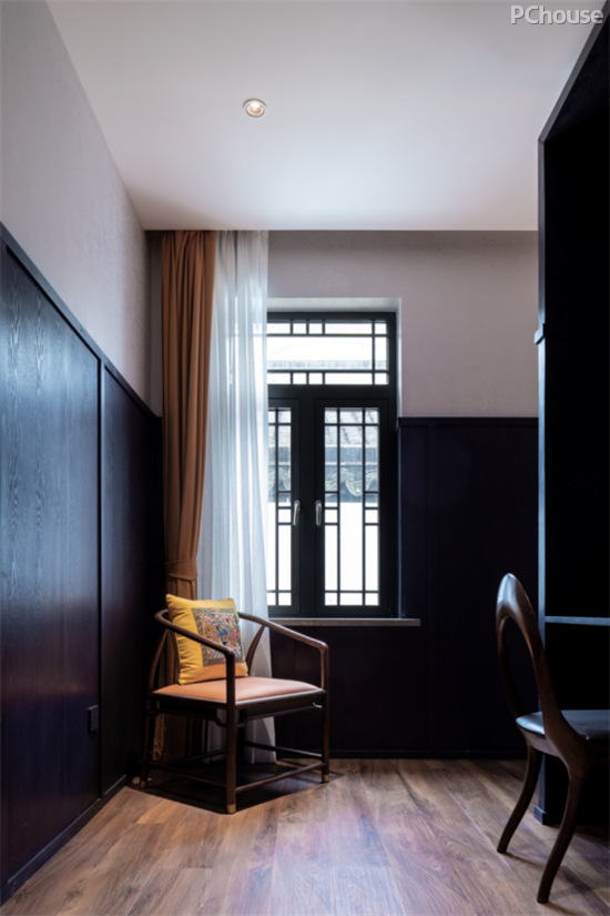 房梁保留了原有结构,从立柱到吊顶木制的设计自然清新,无论是中式圈椅还是现代简约北欧家具,年轮的脉络里蕴藏着历史的风味。