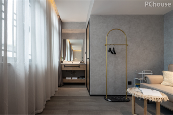 客房【春曲】的设计简洁明快,灰色和黑色的激情碰撞,还有一个造型独特的仙人掌衣挂,处处洋溢着潇洒和不羁,彰显着当代青年青春律动的旋律。