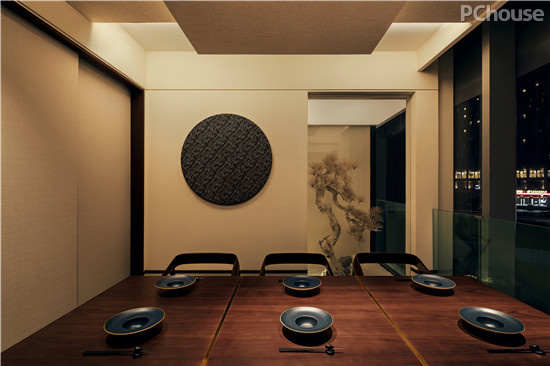每间包房以日本地名命名,富士、京都、东京、神户、千叶等铜制门牌嵌有光源,斑驳的光影投射于粗粝的墙面上,颇有几分雅意。为了让用餐者得到纯粹的体验感,设计师在软装陈设上也丝毫不敢松懈,从松柏艺术装置、和服摆件到日式挂画,无一不精到,甚至餐具摆盘也颇费心力,不同食材,对应的摆盘方式皆有考究。细微之美,却蕴含着设计者质朴的匠心。