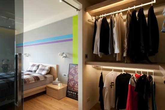 书房与厨房的衔接隔间,以Z字型为走向,部份作为衣柜使用,厨房面向则变化出实用的电视柜体。