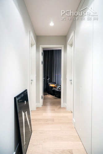 编辑点评:此处过道是一片白色的空间,两边的房门及橱门与墙壁溶为一体,不能辨认。而在墙壁放置一副黑色的画像则是很好的点缀,避免了颜色过于单调。