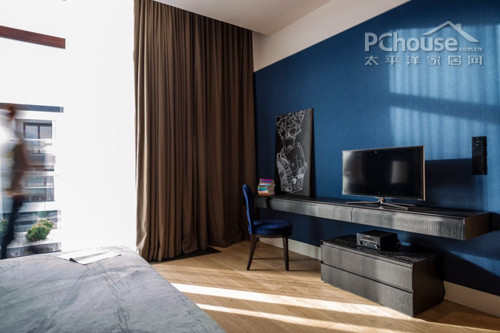 编辑点评:卧室是一片蓝色的海洋,而墙边设置的电脑台则增加了卧室的功能性,台上的抽象画增添了艺术感。而电脑台也没给人硬邦邦的感觉,而是柔软而舒适的质地。