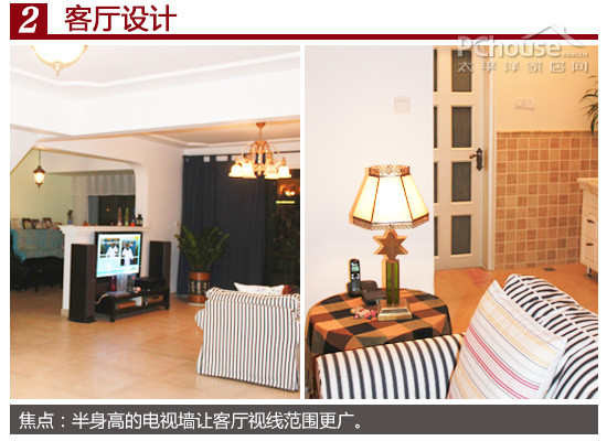 温情地中海主题show:蓝白相间的沙发布便是地中海风情的一大体现;其余款式不太统一的沙发布与桌布,体现了女主人不受拘束的独特个性。