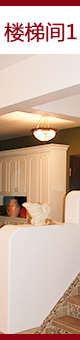 灯光把整条楼梯照亮,波光粼粼映在天花与墙面上,映射范围广,营造的效果独特,让楼梯口的空间连成一体,亮光让整个楼梯间不再局促。