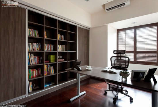 编辑点评:运用线板的修饰,对称性的框线隐藏主卧卫浴门片于无形。