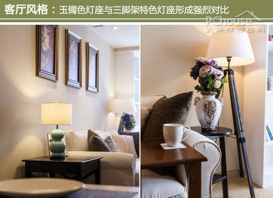 设计师建议:台灯的底座也用上玉镯色调,古调十足,与对面的三脚架式台灯形成对比。