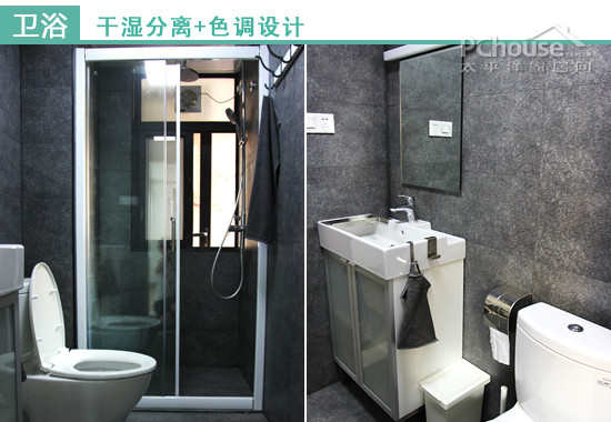 卫浴:卫生间采用了干湿分离的设计。透明玻璃让空间有更多穿透感,不显狭小。色彩上以灰白亮色为主,简约至上,尽显北欧风。