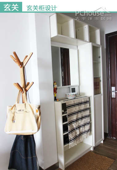 玄关玄关柜做了一个嵌入式的设计,很好的利用了角落空间,玄关镜有放大狭小玄关的作用。