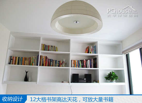 收纳设计:不要漏了,小房间另一墙角还有书柜,小孩子要上学,预留一个书柜以后藏书。