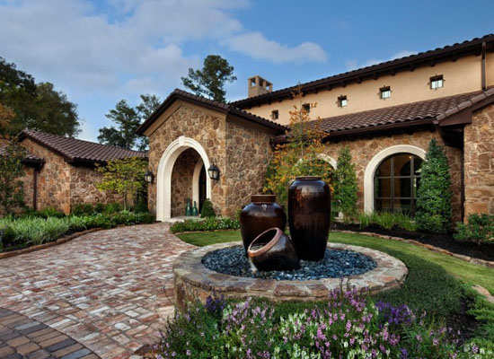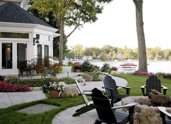 面临着大海,种上形状奇特的松树,给人悠闲淡泊之感。还有一个小小拱桥,让花园更具风格。