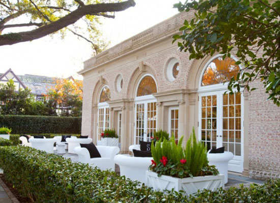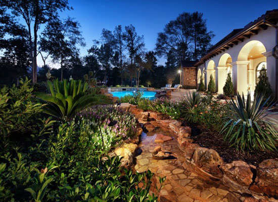 设计独特的花园格局,虽然占地面积较多,但是给人的壮丽之感却也浓厚。尤其是中央那个游泳池,极具现代化气息。